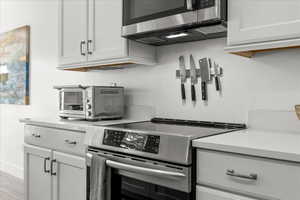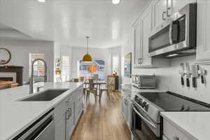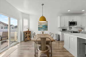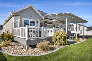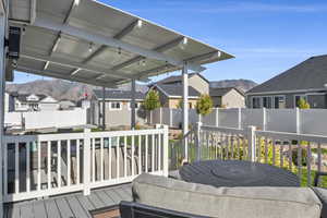 Home for the Holidays! Celebrate the holidays and the New Year with your dream home! Celebrate the winter holidays and ring in 2026 with fireworks over Lake! Lakeside living at its finest-where class and tranquility meets outdoor recreation and breathtaking un-obstructed views of the Oquirrh Mountains and Stansbury Lake. Custom designed with Luxury in mind, this Lakeside home boasts 5 Bedrooms, 3 Full Bathrooms, and 2 Full levels of ample living space (over 4,000sqft). On the main level, enjoy Luxury vinyl "wood" flooring and custom rugs for enhanced enjoyment. The professionally landscaped front yard is decorated with beautiful mature trees, trimmed (flowering and non-flowering) bushes, and colorful flower beds. Enjoy the upgraded Oversized Garage with insulated garage door, you have spacious parking for your vehicles and extra storage for your personal tools and seasonal storage. There is also a 50-foot RV parking pad (6" Thickness) equipped with 50 amp RV Plug all secured with a Gate. Past the RV Pad is a garden Gazebo with 10x10 Pad with power. Speakers have been installed under the landing of patio stairs to enjoy music while you're relaxing in the Gazebo Want more Sun? Work on your tan your own sandy beach or chill out under the 10x10 Beach Gazebo with power (reinforced with 4x4 wood post inside metal post and bolted to base) to enjoy party tunes for your gatherings! Cool off in the shade under the spacious covered patio with power, located adjacent to the carefully curated Rose Garden enhancing backyard peace and beauty. There are no back yard neighbors (unless you count the ducks, geese, wild birds, and variety of fish)! A Custom Trex Deck Boardwalk to the Boat Dock (12ft x16ft) has power so you can launch your personal water craft (manual or electrical powered) and float along the 110 acres of lakefront. Walk up the customized Trex Stairway to the customized Trex Deck/Patio (16ft x 36ft) with 4 installed Poles for Sun Shade Sails (included) with custom Deck Railing....WOW talk about Views for Days! Let's checkout the home interiors: Enter through the inviting large covered Front Porch into the tiled front entryway with upgraded larger coat closet, you're greeted with a formal Dining Room accented with large, bright windows and plenty of space for everyone at the table! Use the serving hatchway to enter into the large, Gourmet Kitchen with vaulted ceilings (15 feet!) with r/c Ceiling Fan and ample Canned Light package, with large corner pantry, ample countertops with additional full dining area, and a bay sliding glass door. Home Chefs will appreciate the New Appliances in the Gourmet Kitchen: (Summer 2024) Stainless Steel Double Ovens, (Summer 2024) Dishwasher, (Summer 2024) Microwave, (Summer 2024) Refrigerator, (Summer 2024) Kohler Stainless Steel Farm Sink, and Gas Range with plentiful Silestone countertops with bar seating! Staggered, Upgraded Taller Kitchen Cabinets adds to the grand vaulted ceilings. The many large windows in the kitchen and adjacent family room enhances the lake views and makes the space feel breezy and inviting. For the colder months, enjoy hot cocoa by the gas fireplace while you watch the mountain and lake scenery turn into a magical seasonal delight! Custom entertainment built-in shelving with 55" Smart Television and surround sound, enhancing this space as well. On the main level, you'll enjoy peace and solitude in your primary lux bedroom with en suite bathroom. With upgraded French door access, the primary suite also boasts vaulted ceilings, r/c ceiling fan with lights accenting the generously sized bedroom with bay window views of the lake, with custom Levolor shades for privacy. You'll love the grand primary closet with plenty of shelves and rods to organize and store your wardrobe. A customized archway into the bath, invites you to get ready for the day with the double vanity taller height countertops, or unwind and have a relaxing soak in the separate jetted garden t