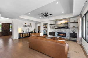 Bring all your toys! This exceptional home is designed to fit them all and then some, with over 2,000 sq ft of garage space, including a double RV garage measuring approximately 51' deep and 44.5' deep, complete with HVAC, a bathroom, 220 power, an RV dump, and an additional 19' x 49' RV pad along the side of the home. Inside, you'll find a beautifully crafted, highly upgraded interior featuring elegant tile and granite finishes throughout, Thermador appliances, an electric oven paired with a gas range, and WiFi-enabled conveniences that elevate everyday living. The gourmet kitchen impresses with a spacious butler pantry, abundant cabinetry, including built-ins beneath the bar, and a seamless flow into the warm, inviting living area with a stylish fireplace. A thoughtfully designed mudroom, central vacuum system, and a large laundry room with granite, tile, and ample storage make organization effortless. The main level includes a dedicated office and a luxurious master suite, offering comfort and convenience all on one floor. Guests will love the private retreat upstairs, complete with three bedrooms, two bathrooms, and a beautifully appointed guest suite featuring a built-in Murphy bed, semi-kitchenette, and en-suite bath. Step outside to enjoy the built-in outdoor grill with a finished storage room, plus exterior 220 and an additional RV dump for ultimate flexibility. With the garage fully plumbed for an air system and storage at every turn, this home is the perfect blend of luxury, functionality, and unmatched space for every adventure. Pressure washer, phase converter in garage, garage refrigerator, and outdoor refrigerator excluded. Buyer to verify all information, deemed reliable, however buyer to verify all info including utilities, rental restrictions, and HOA information if applicable.