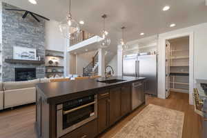 Updated ultra-custom masterpiece, located in a private lakeside resort community, backing Talon's Cove Golf Course with views of Mount Timpanogos, Utah Lake and one of the most scenic fairways in Utah. Prime location, timeless design, and quality craftsmanship with attention to every detail make this one of Saratoga's finest and most uniquely impressive homes, which must be seen in person to fully appreciate. The main level is ideal for gatherings with a grand entry, extensive great room with soaring windows and ceilings, gourmet kitchen with a butler's pantry, and formal dining. The main-level primary suite extends into the southeast tower, providing a sanctuary space with panoramic views, and includes a spa-like bathroom, and an expansive closet with built in shoe racks, drawers and an island, along with secondary laundry hookups. Additional main-floor highlights include a two-story executive office/den/library with floor-to-ceiling windows, built-in workspace and bookshelves, and coffered ceilings; a mud room area with abundant cabinetry for storage.; and an extensive laundry room with flex space for crafts, projects, home business or other use. The daylight basement is a wonderland for all ages. Children (or the young-at-heart) might prefer to skip the stairs and access the basement by taking a concealed slide from Rapunzel's Tower to Cinderella's Castle on the way to Snow White's Cottage, and passing by the Beast's Den before exiting into a vintage English street setting (Harry Potter themed occasionally) with a parlor leading to a luxury theater including stadium seating and Dolby Atmos surround sound for a true cinematic experience. Other basement features include a massive family room with space for a wide variety of recreational activities; a corner tower room with panoramic windows, a guest bedroom and bathroom suite; a large additional bedroom or workout area; abundant storage spaces, and a walkout exit with French doors. The upstairs level features two bedrooms with full ensuite bathrooms, a spacious additional bedroom/bonus room above the garage, a large loft with access to the covered deck and a secret lounge accessible through a built-in bedroom bookshelf. The corner firepole (with restricted access) will get you from upstairs to the main level quickly in the event of a fire (or if you are just running late for dinner). Exterior features include a private inner courtyard with a garden, waterfall, and full-size gas or wood burning brick fireplace; a covered deck and patio with postcard-worthy views; customizable landscape lighting to accentuate the beautiful and mature landscaping; in-ground trampoline; 43 solar panels, providing abundant clean electricity at a nominal cost; spacious 4-car garage spanning over 1,000 sf.; RV / boat parking, etc. Comfort and livability features include radiant floor heat in select tile areas, reverse osmosis water system, instant hot water, integrated humidifier, whole home intercom system, soundproofing, and four bedrooms with full ensuite bathrooms. Experience the incredible lifestyle this home and community provide. Unique and extensive HOA amenities include a private boat marina; multiple lakefront clubhouses with exercise facilities, game rooms, swimming pools and spas, including a one-of-a-kind year-round natural hot-springs pool & spas; multiple parks, including a lakeside park with a stream, beach volleyball, playground, large pavilion with an outdoor fireplace; scenic walking trails along Utah Lake, etc. This remarkably serene atmosphere is only minutes away from extensive restaurants, shopping and other conveniences. New roof installed in May 2025. Home warranty included with sale. To view a video tour and a point/click 3D property tour click "View Tours" on the listing, or visit: https://my.matterport.com/show/?m=1m8i9zUQHD8 (for a 3D tour) or https://vimeo.com/964750567?share=copy (for a Video Tour). Note - portions of home were painted and updated after the Video and 3